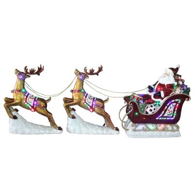 Northlight santa and reindeer sleigh ride outdoor house flag 28 x 40. For just a few hours of time and less than $20, you can make your own diy santa sleigh and reindeer outdoor decorations. According to traditional festive legend in some parts of the world, santa claus's reindeer are said to pull a sleigh through the night sky to help santa claus deliver gifts to children on christmas eve. Santa in his sleigh measures: Choose from traditional red designs or beautiful snow white sleighs with matching reindeer.